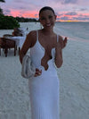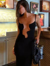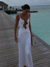 Deze elegante maxi jurk met V-hals en cut-out details biedt een verfijnde uitstraling voor speciale gelegenheden. De plooirok en spaghettibandjes zorgen voor een stijlvolle en comfortabele pasvorm.