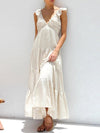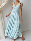 Deze elegante maxi jurk met V-hals en gelede zoom biedt een luchtige pasvorm en tijdloze stijl. Ideaal voor stranduitjes en zomerse vakanties.