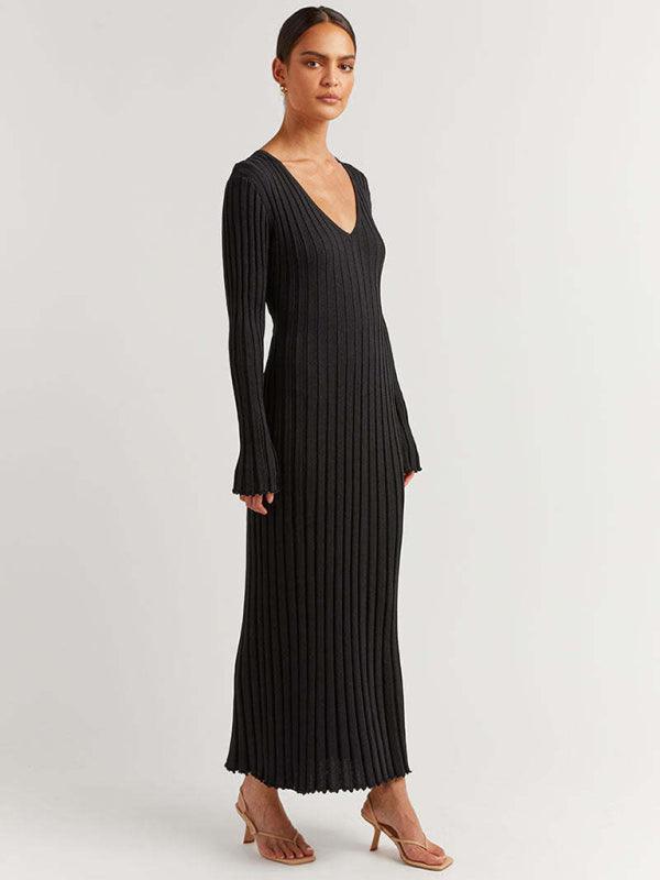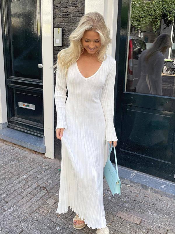 Maxi Jurk met V-hals en Ribbelstructuur - Maxi Dresses - Jurkjes.co