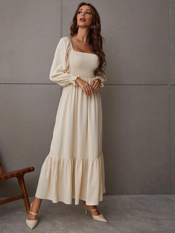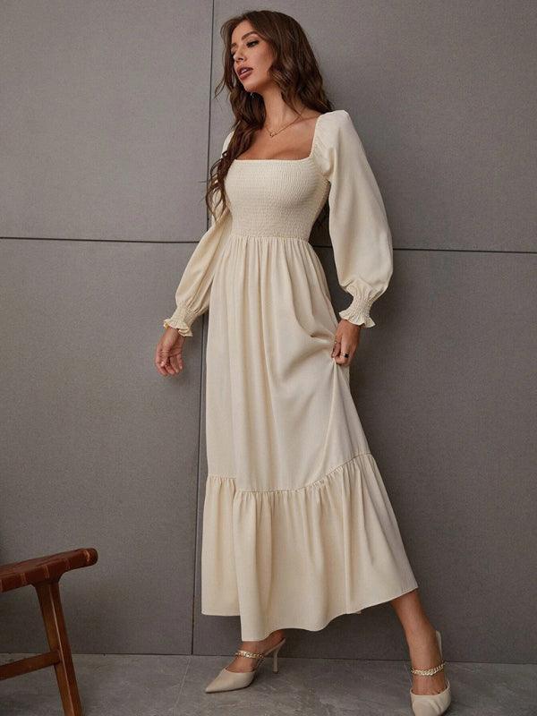 Maxi Jurk met Vierkante Hals en Gelaagde Rok - Maxi Dresses - Jurkjes.co