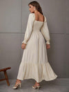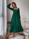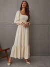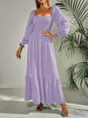 Maxi Jurk met Vierkante Hals en Gelaagde Rok