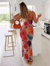 Deze elegante midi jurk met V-hals en kleurrijke bloemenprint biedt een flatterende pasvorm en vrouwelijke uitstraling. Perfect voor zowel casual uitjes als speciale gelegenheden.