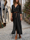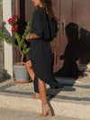 Deze stijlvolle midi jurk met V-hals en zijsplit biedt een elegante en comfortabele pasvorm. Perfect voor zowel casual als formele gelegenheden, met een effen kleur en veelzijdig ontwerp dat eenvoudig te stylen is. Midi jurk, V-hals, effen kleur, casual stijl, elegante jurk, dagelijks gebruik, zijsplit, lange mouwen, tailleband, minimalistisch design