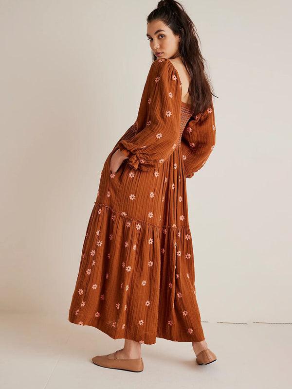 Deze charmante midi jurk met vierkante hals en geborduurde bloemen biedt een comfortabele pasvorm. Ideaal voor elk seizoen en perfect voor casual uitjes. midi jurk, vierkante hals, bloemenprint, casual stijl, comfortabele pasvorm, damesmode, geborduurde details, seizoensgebonden jurk, trendy jurk, ontspannen stijl